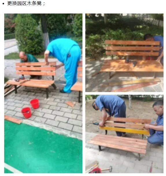 修复10号楼前廊桥水系木条,还原景观原貌,让小区休闲区域更具吸引力,增添生活诗意;园区井盖刷漆标识、编号:用颜色警示危险、区分管道系统,提升巡检维修效率,让园区管理更规范。