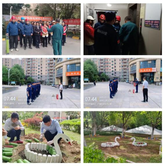筑牢安全防护网 凝聚团队向心力我们以安全管理筑牢防线,以团队建设凝聚合力,通过应急演练强化安全保障,以创意实践激发团队活力,具体开展了以下工作:开展电梯困人应急救援演练,强化安全意识,为居民安全乘梯筑牢保障;开展消防应急培训,强化突发事件处理的规范性与高效性,锻炼了团队的快速响应及协同配合能力;开展“创意之光、变废为宝”活动,绘制《天鹅》彩绘酒瓶作品。