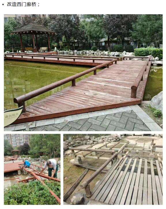 为持续优化园区居住环境,提升业主生活品质,我们扎实推进多项设施升级与环境改造工作:改造西门廊桥;