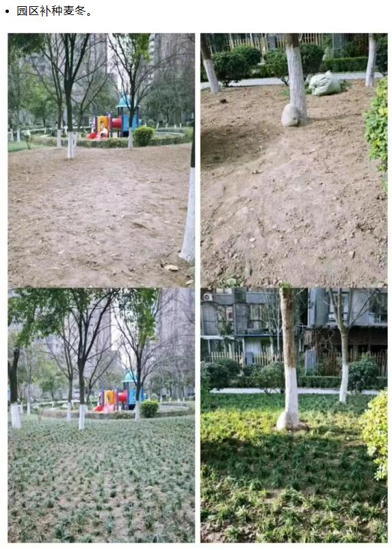 针对小区地面积水、路面不平区域,铺设沥青整改,改善道路状况,让出行更顺畅;外墙、地库漏水维修:全面排查统计漏水隐患,及时修复外墙及屋面漏水,严防雨水渗入,守护家人们的财产安全;园区道沿刷漆:用色彩做好警示,兼顾人车安全与交通引导,同时为园区增添亮色、美化环境;廊桥水系维护: